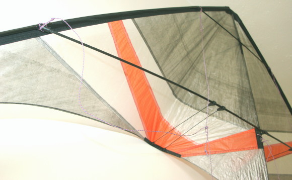 It has the same frame geometry as the T5 Taipan, but a different sail plan and bridle. It features SkyShark 2PT for the leading edge, 3PT for spreaders and P90 for the spine. The Cuban version gets its name from the sail material - originally 'Cuben Fibre'. This is an advanced Mylar/Dyneema sandwich laminate material which offers incredibly light weight at around 17 gm/m2 (compared with Icarex at nominal 32 gm/m2). (The fabric is now a Dyneema product.) It is the current state-of-the-art for low weight combined with high strength. Optimised for 0-8mph wind. It generates solid pull in 3 mph wind and it's possible to keep the kite in the air in zero wind by walking to and fro; the kite is set up not to flare out so it is possible to make up ground in almost any wind. Price £280
